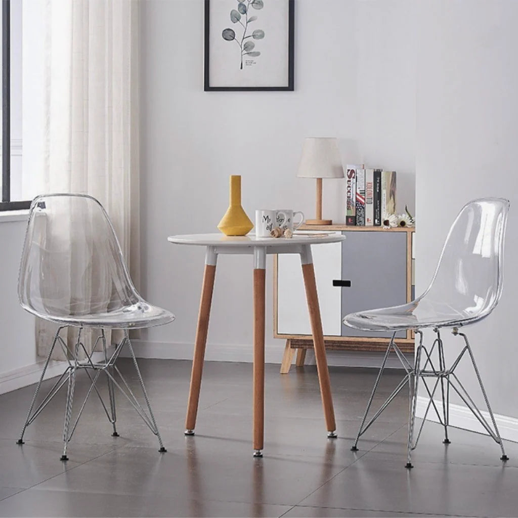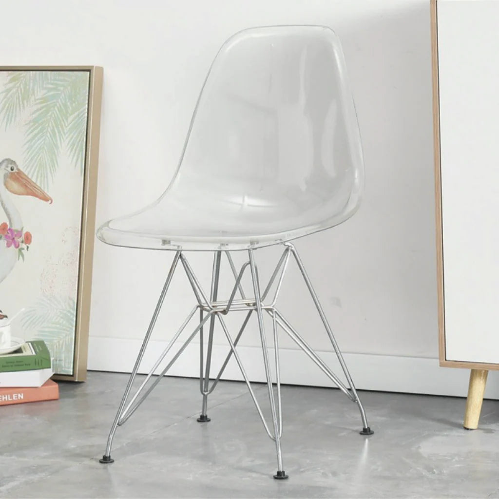 このチェアの最大の魅力は、何といっても透明感のあるクリアデザインです。 クリア素材の持つ抜け感:透明な素材は空間に圧迫感を与えず、部屋を広々と見せる効果があります。 ・滑らかなカーブシルエット 身体に沿うように設計されたカーブが視覚的にも美しく、座る人を自然に包み込みます。 ・スタイリッシュな脚部 スチール製の細身の脚が軽やかでありながら安定感を演出。ミッドセンチュリーを思わせるデザインで、モダンなインテリアと好相性です。 北欧風、韓国インテリア、モダンスタイル、ミニマルデザインなど、幅広いテイストに馴染むため、コーディネートの幅が広がります。