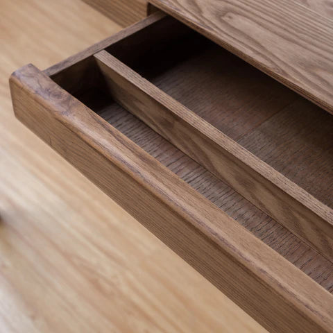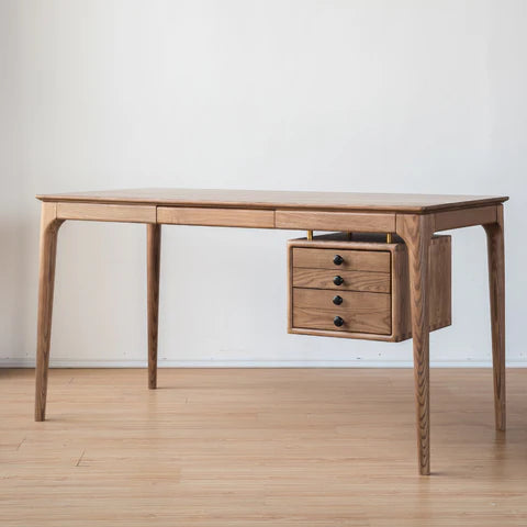 素材には、木目が美しく耐久性に優れたアッシュウッドを採用。 柔らかで温かみのある木目は、長く使うほどに味わいを増し、愛着が深まります。シンプルなデザインだからこそ、無垢材ならではの質感が際立ち、自然素材のぬくもりを感じながら作業ができます。 丈夫で耐久性も高く、日常的にしっかり使える信頼性のあるデスクです。