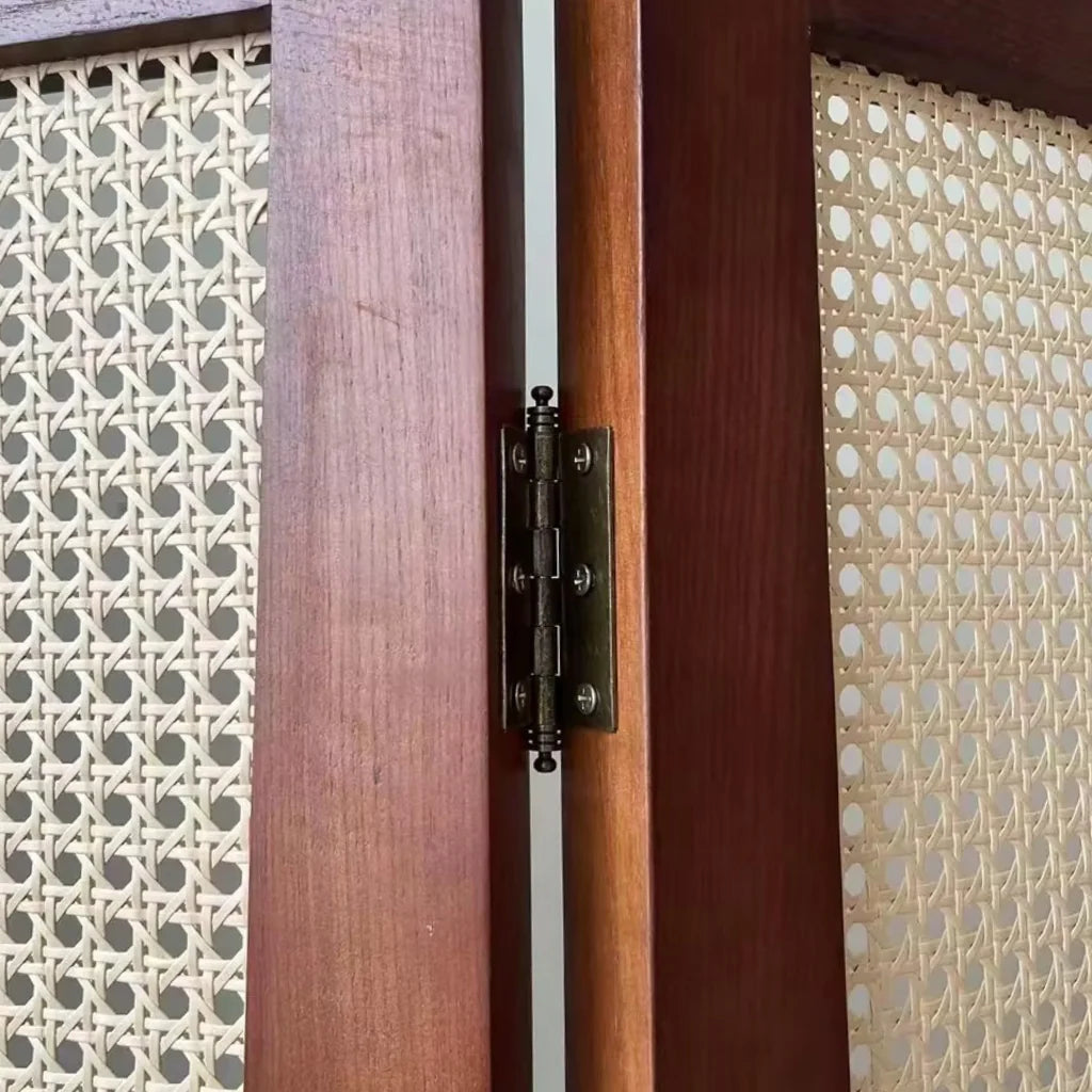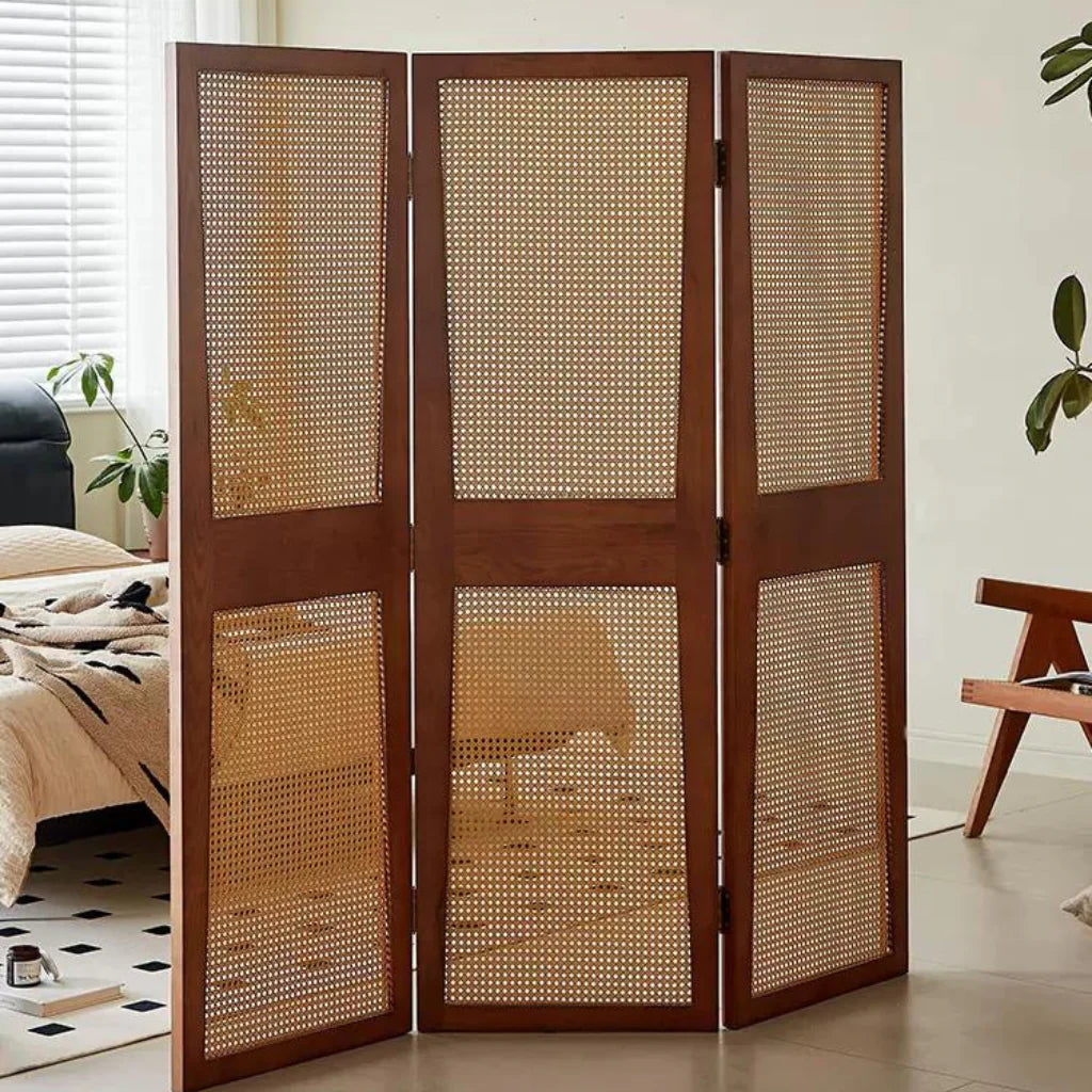 フレームには、木目の美しさと堅牢性を兼ね備えたアッシュ材を使用。温かみのあるブラウンカラーが落ち着いた印象を与え、空間にナチュラルな調和をもたらします。 面板にはラタン編みを採用。自然素材ならではの軽やかで通気性のあるデザインが特徴で、視線を完全に遮ることなく、柔らかな仕切りとしての役割を果たします。光や風を程よく通すため、圧迫感を与えず開放的な空間を維持できるのもラタンならではの魅力です。 また、木枠とラタンの組み合わせが織りなすオリエンタルな雰囲気は、モダンインテリアだけでなく、北欧、ナチュラル、アジアンテイストなど多様なスタイルに自然に馴染みます。