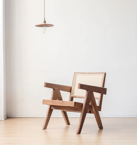 座面・背もたれに天然ラタンを使用し、軽やかで涼しげな印象を持たせながらも、木製フレームが安定感と重厚さを演出。 直線的なラインと角度をつけた脚部デザインは、シンプルながらオブジェのような存在感を放ちます。 ナチュラル、チェリー、ウォルナット、ブラックといった豊富なカラーバリエーションにより、北欧テイストからモダンスタイル、ヴィンテージライクな空間まで幅広くマッチ。 リビング、寝室、書斎など、どんなシーンにも溶け込むデザイン性の高さが魅力です。