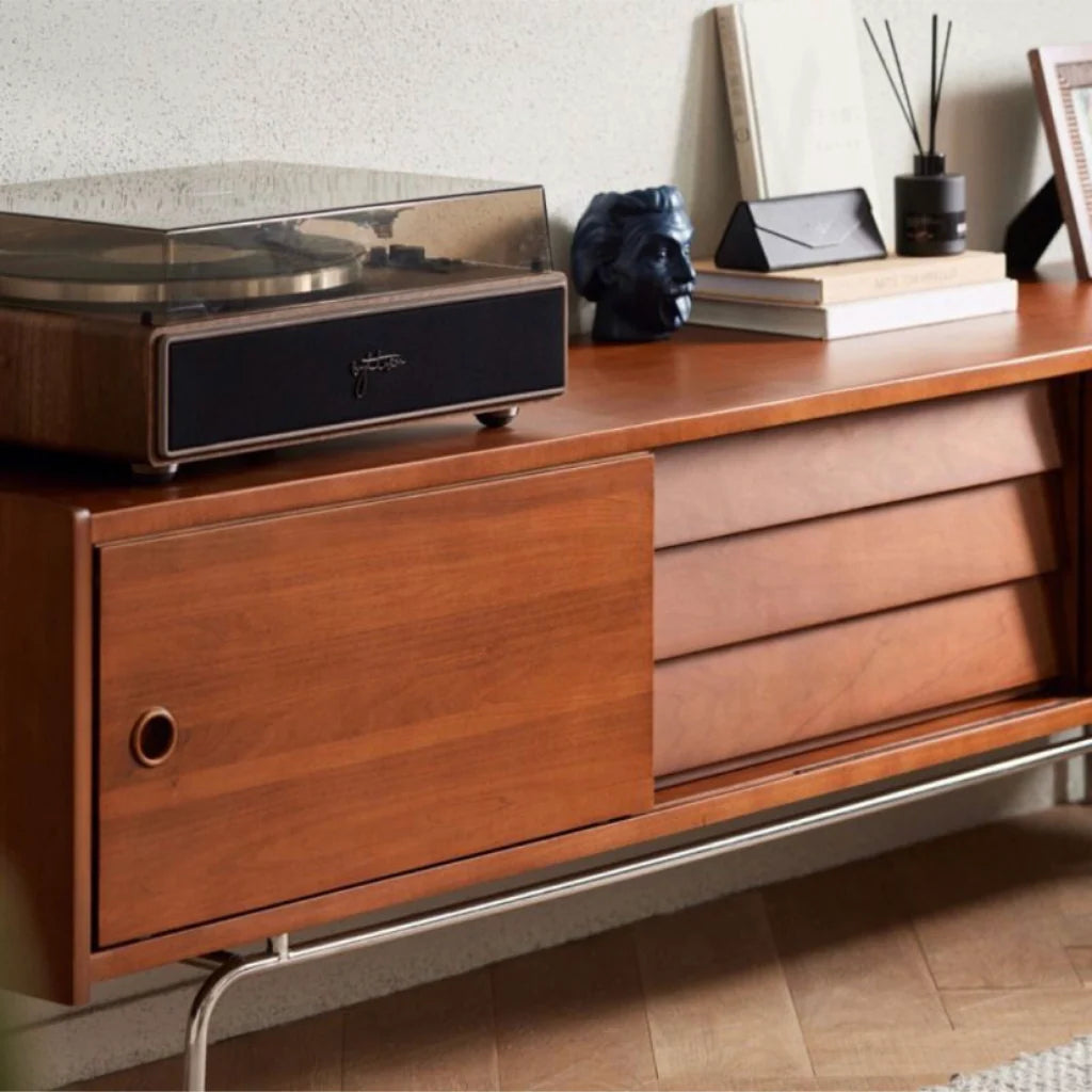テレビやレコードプレーヤー、スピーカーなどを置くのに十分な広さを確保。ディスプレイとして花瓶やランプを置けば、より一層おしゃれな空間に仕上がります。